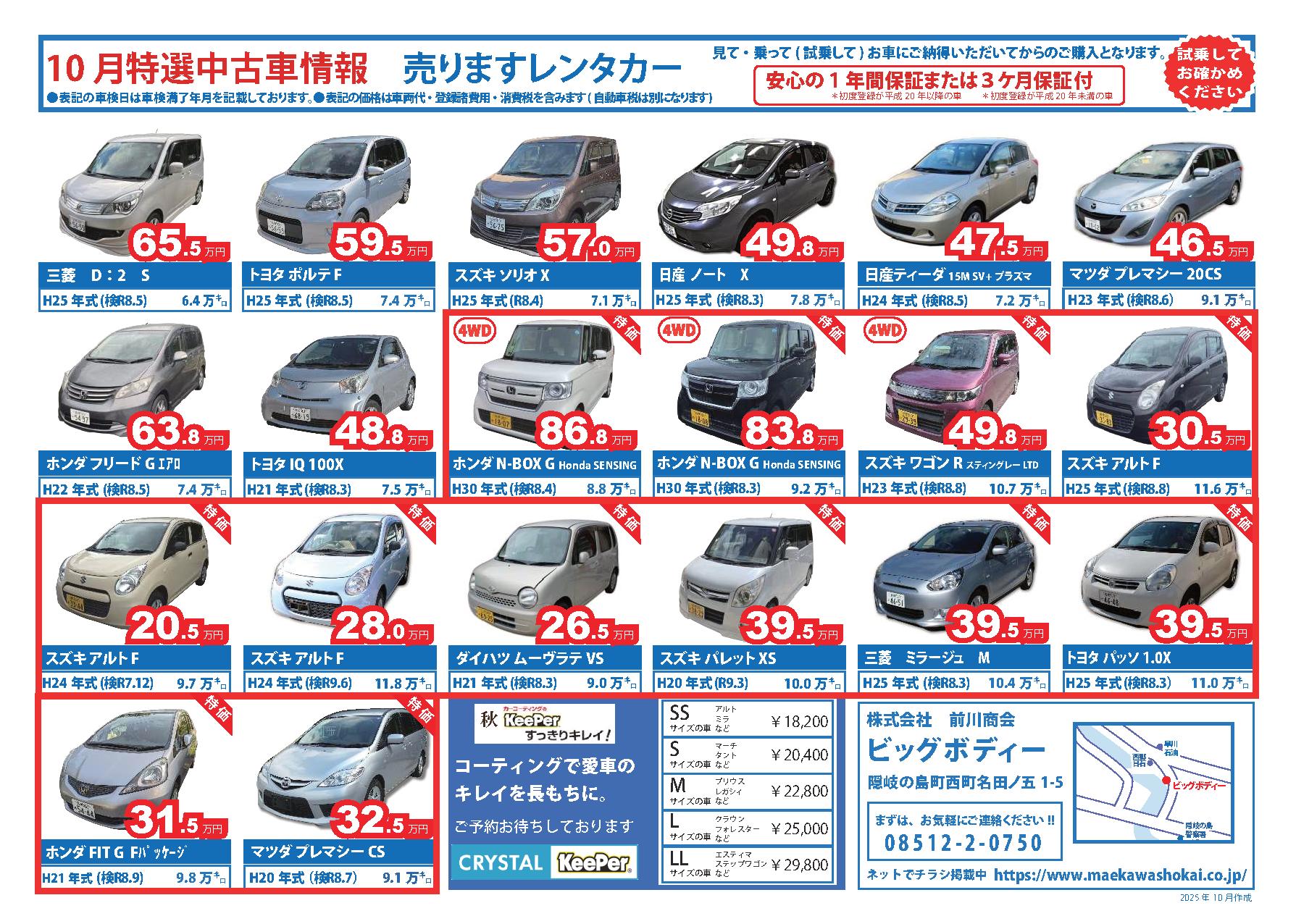 自動車事業部より10月の特選中古車情報のお知らせです。